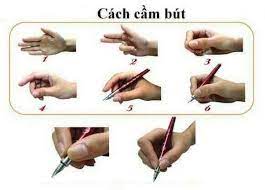 Cầm bút bằng tay phải, bút được cầm bởi 3 ngón tay: ngón cái, ngón trỏ và ngón giữa. Ngón cái và ngón trỏ kẹp bút ở bên trái và bên trên, ngón giữa kẹp bút đồng thời là ngón đỡ bút. Lưu ý: không kẹp quá chặt 3 ngón tay hoặc cầm quá lỏng lẻo, điều này sẽ làm tay bị cứng hoặc không kẹp chặt được bút khi viết, tay bé phải cầm bút ở trạng thái thoải mái nhất, tức là lực kẹp vừa phải.