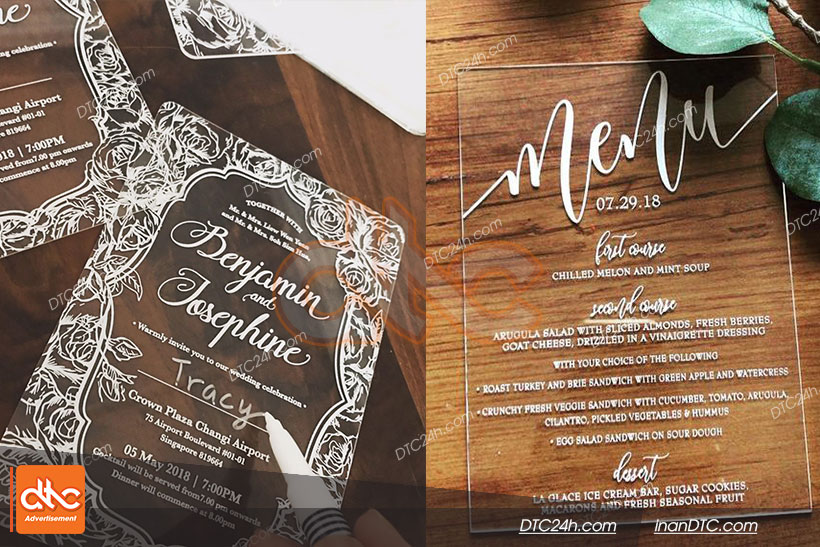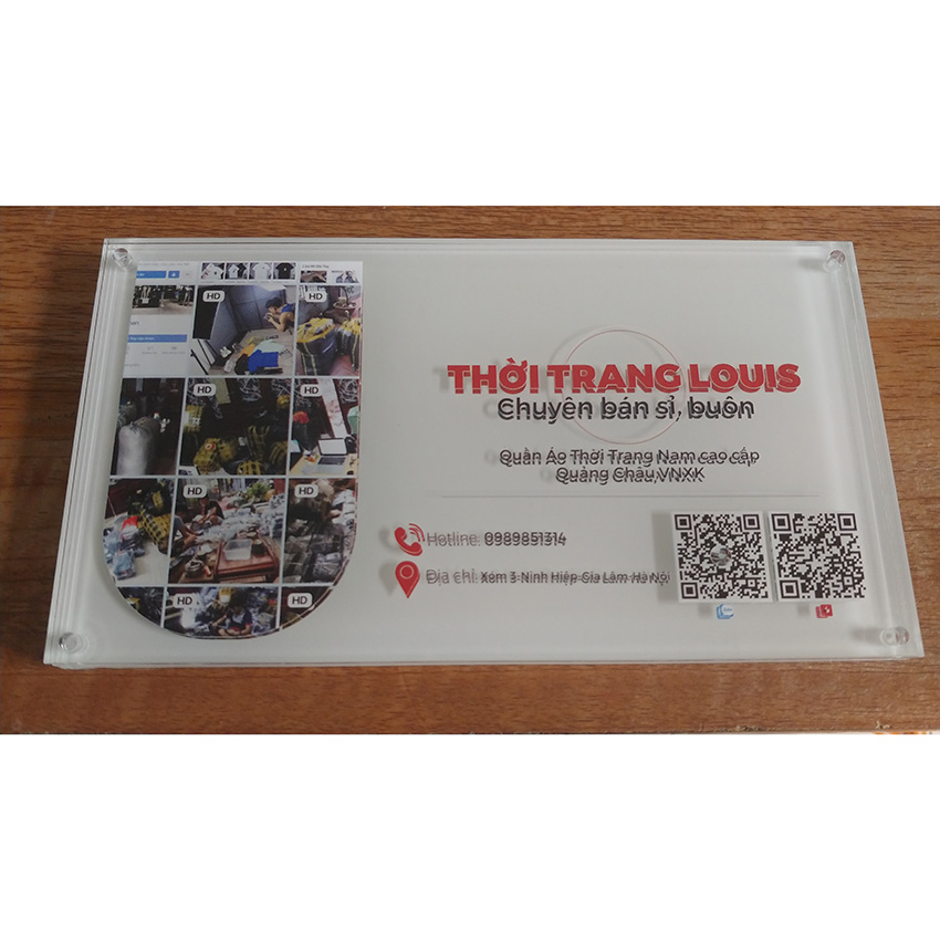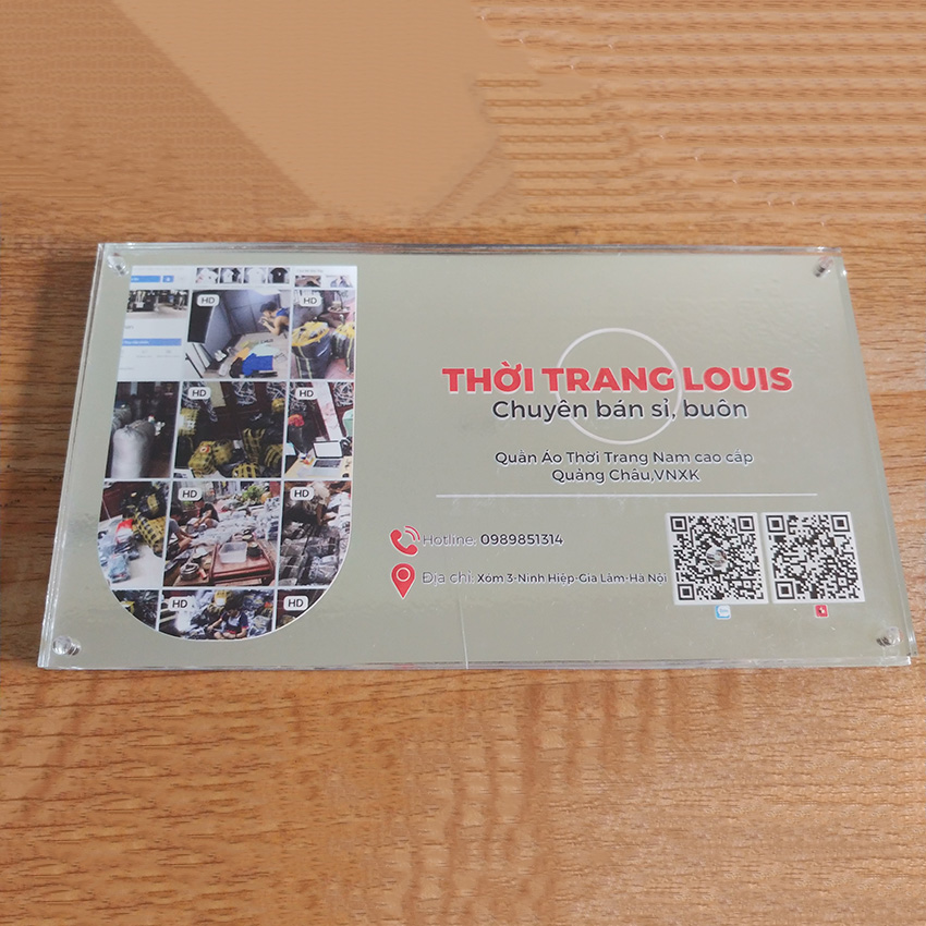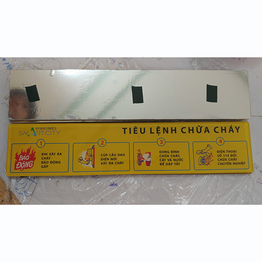 Gia công biển Mica in UV có thể in ngược và phủ lớp bảo vệ hoặc cán decal bạc, có thể dán băng dính 2 mặt bám dính tốt mà không cần phải bắt vít hay đinh vào tường.