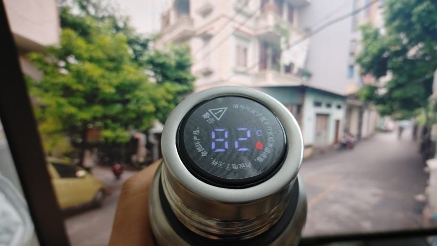 - Hiển thị nhiệt độ trên nắp bình khi gạt nhẹ tay qua