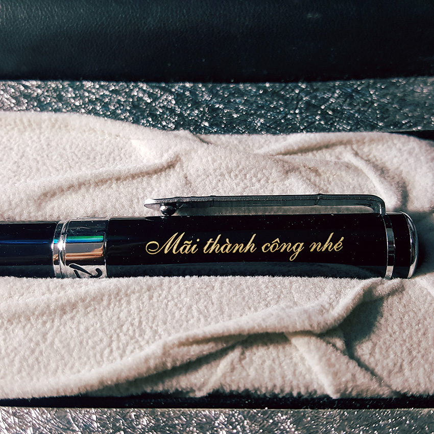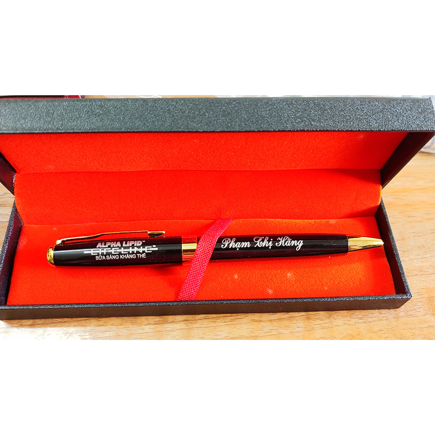 - Khắc laser trên thân bút: Tên, Họ tên, Chức vụ + Họ Tên, Tên người nhận, tặng, các thông điệp khác (cần ngắn gọn, bởi bút có không nhiều không gian thể hiện)